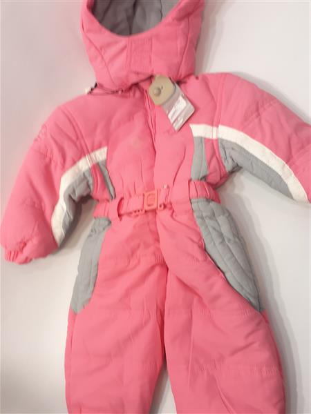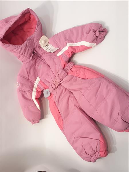 Bunda béléses lányka overál, lecipzározható kapucnival, elöl végig cipzátas, csatos övvel a derekán. Ujján és alján gumirozással. Anyaga 15% pamut, 85% poliészter. mosható 40°C-on.