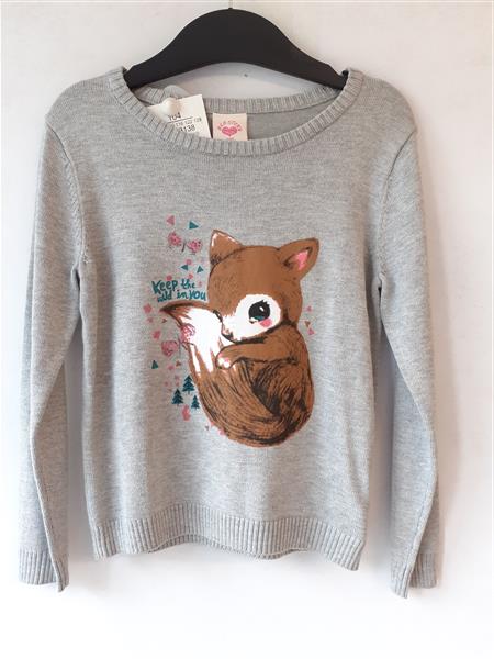 Kötött gyermek pulóver vasalt mintával. anyaga 80% műselyem, 20% poliamid. mosható 30°C