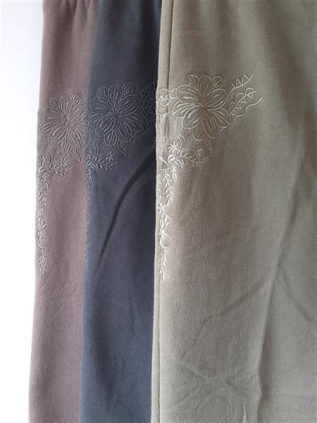 Bolyhos belsejű, meleg szabadidő andrág zsebbel az oldalán. Szára egyenes, dereka gumis. Anyaga 100% pamut. Mosható 40°C-on.